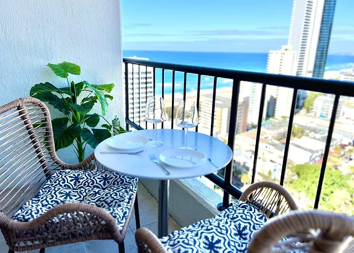 Das 1-Zimmer-Apartment Top Level Ocean View Oasis With 3 Beds Gold Coast liegt am Strand von Gold Coast, etwa 10 Gehminuten von der SkyPoint Observation Deck entfernt. Dieses Apartment mit einer Terrasse befindet sich in etwa 400 Meter Entfernung von der Cavill Mall.